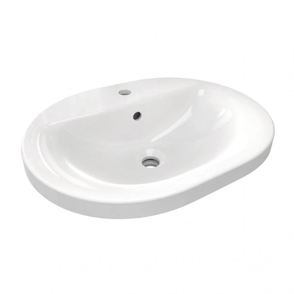CONNECT Овальный встраиваемый на столешницу умывальник 55х43 см, с 1-м отверстием под смеситель, с отверстием перелива, с монтажным шаблоном, без крепежа