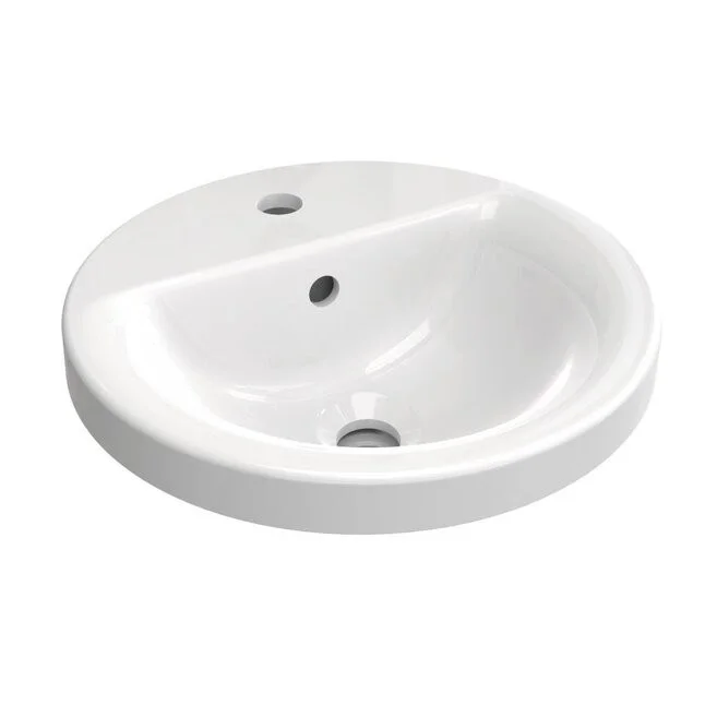 CONNECT Круглый встраиваемый на столешницу умывальник 38 см, с 1-м отверстием под смеситель, с отверстием перелива, с монтажным шаблоном, без крепежа