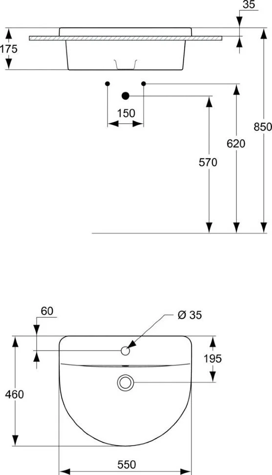 CONNECT Arc Встраиваемый умывальник 55 см, с 1-м отверстием под смеситель, с отверстием перелива. С монтажным шаблоном EESV82767