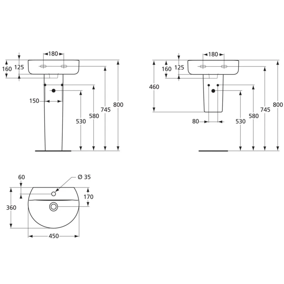 CONNECT Sphere Умывальник 45 см, с 1-м отверстием под смеситель, с отверстием перелива, без крепежа. Для монтажа с малой полуколонной