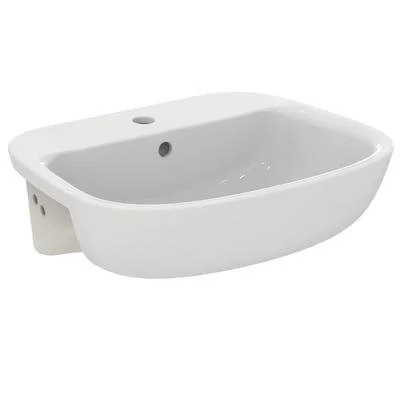 ESEDRA Полувстраиваемый умывальник 55 см, с 1-м отверстием под смеситель, с отверстием перелива, для монтажа на столешнице, с монтажным шаблоном EEEV46267, с крепежом EEE209167