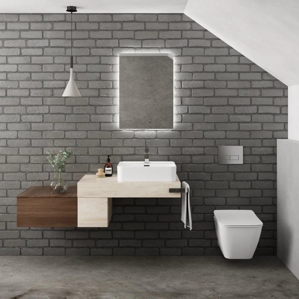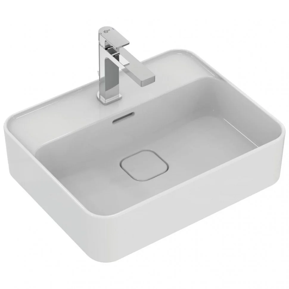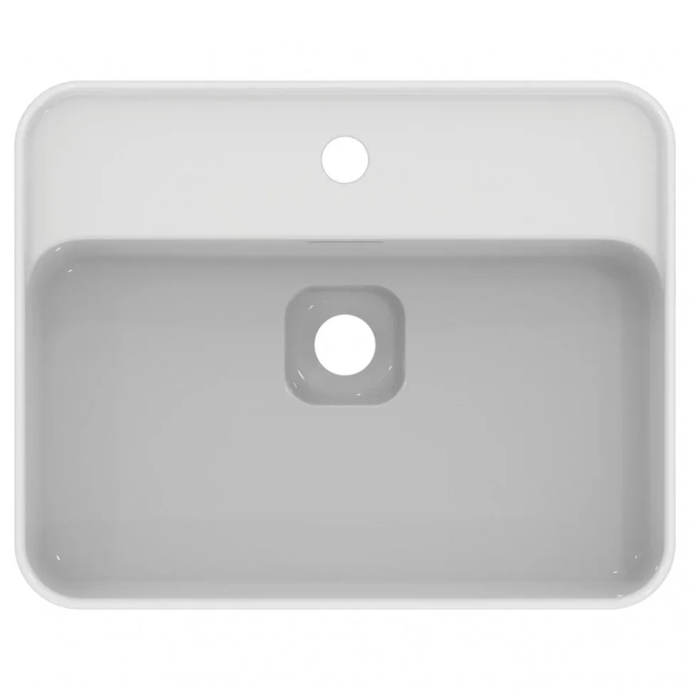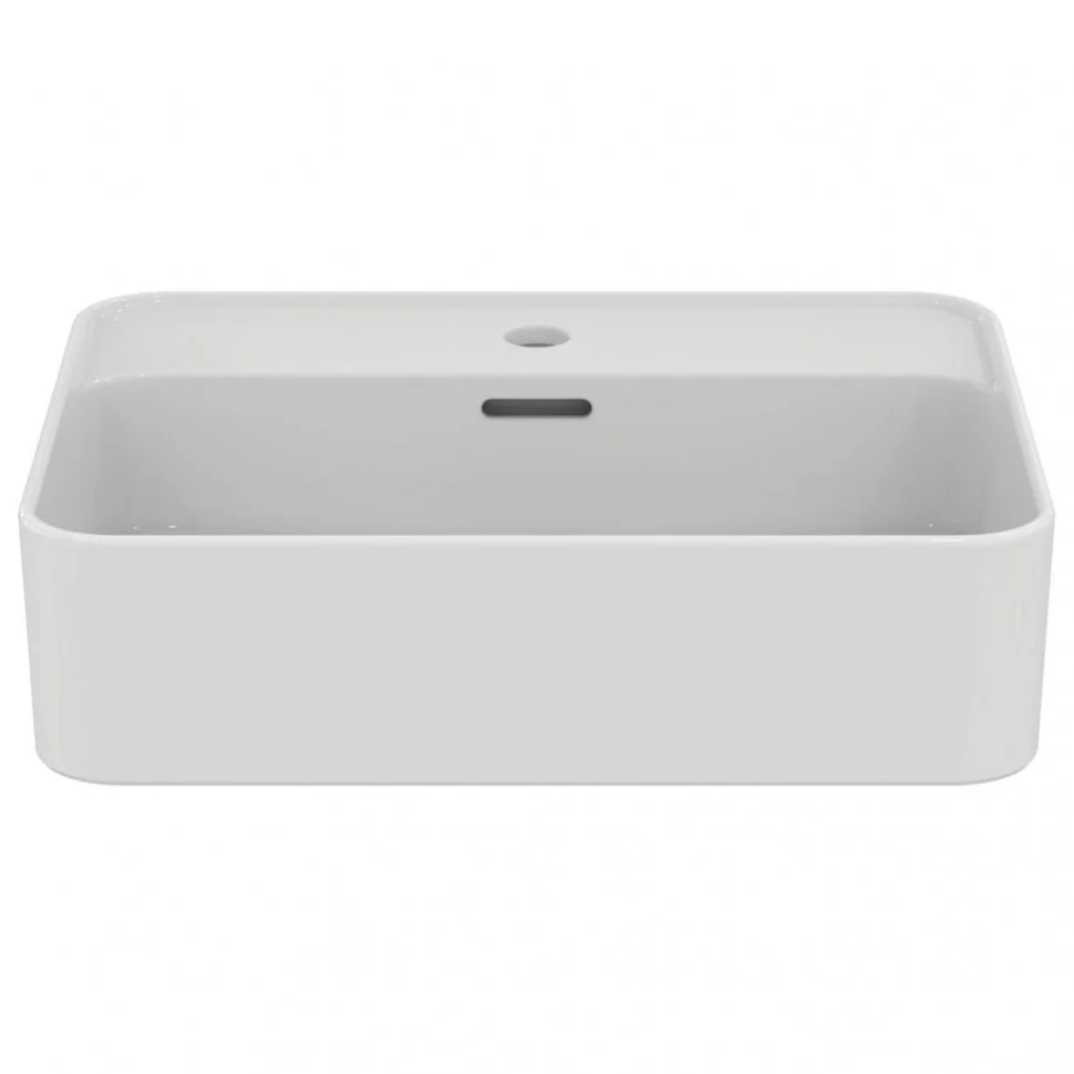 STRADA II Vessel Умывальник 50 см с полочкой для монтажа смесителя, для монтажа с мебелью, с отверстием перелива (щелевого типа), с керамической накладкой слива (T854601), с крепежом