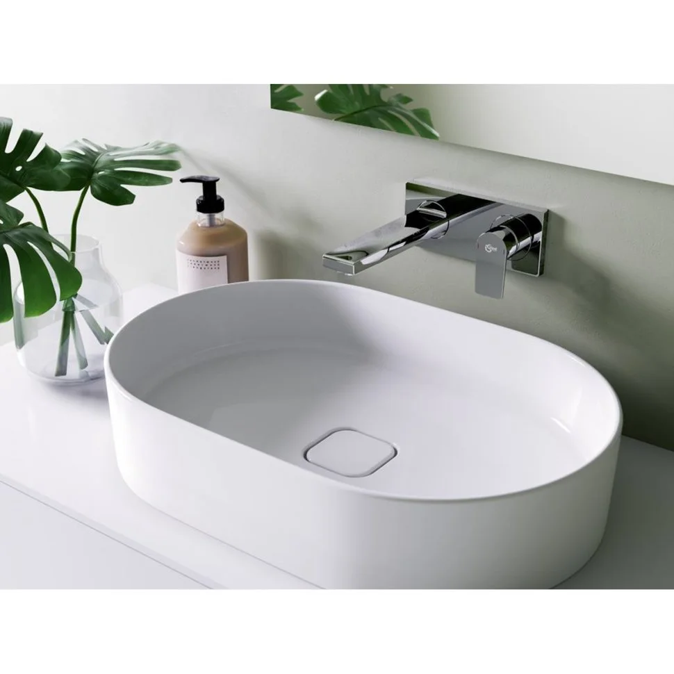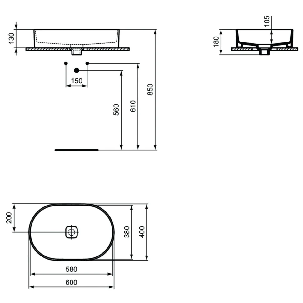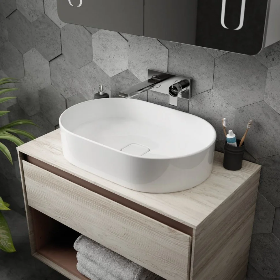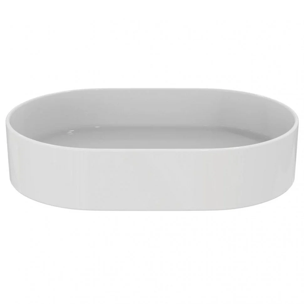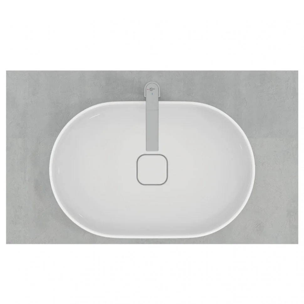 STRADA II Oval Vessel Умывальник 60 см без отверстия под смеситель, для монтажа с мебелью, без отверстия перелива, с керамической накладкой слива (T854601), с крепежом