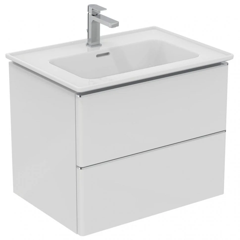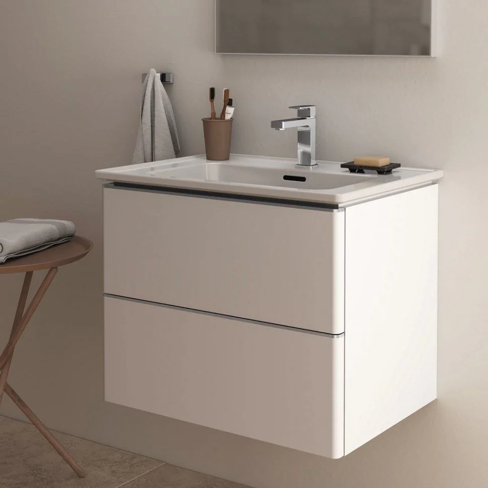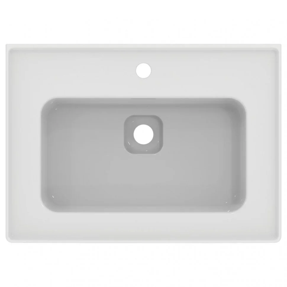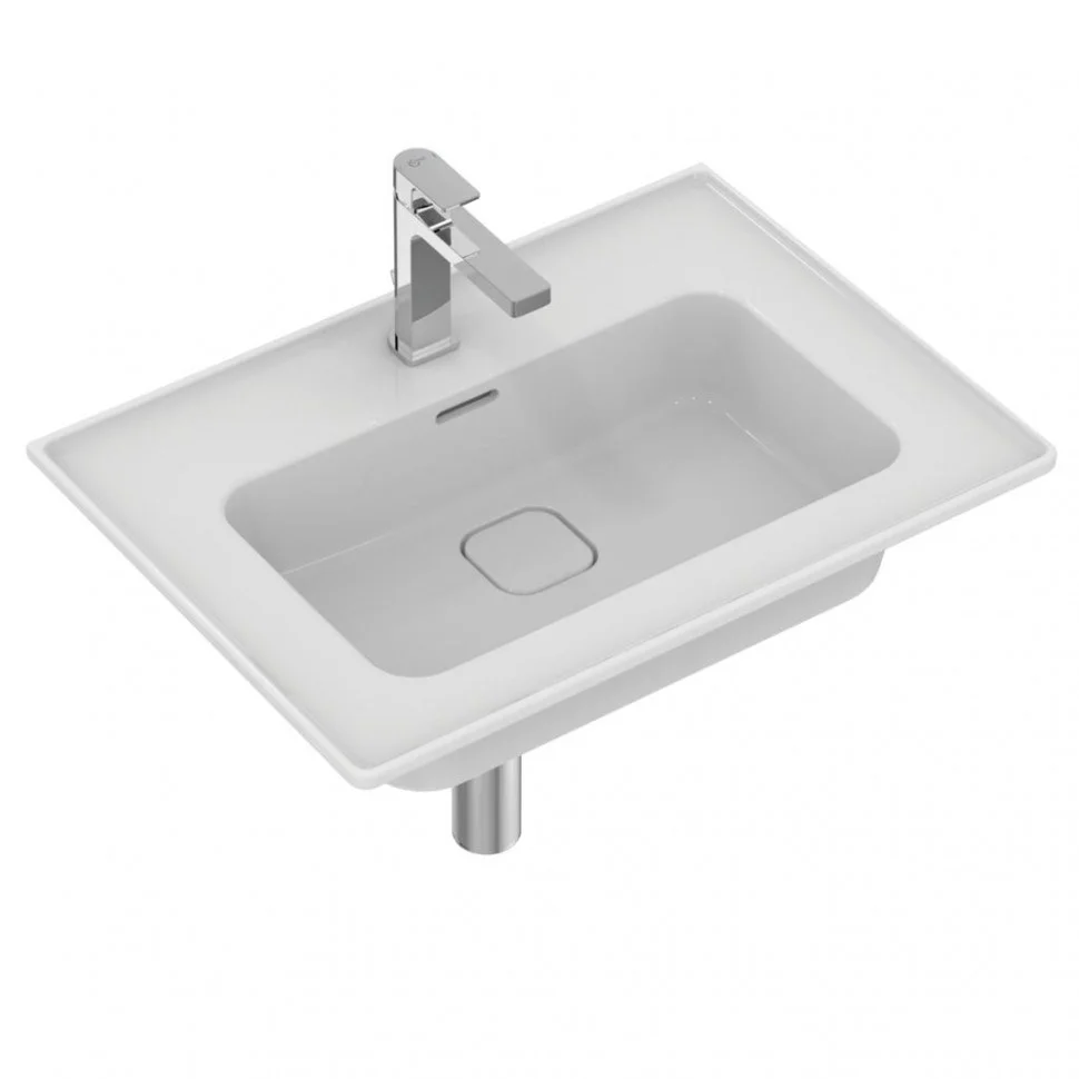 STRADA II Vanity Умывальник 64 см с отверстием под смеситель, для монтажа с мебелью, полуколонной или дизайн-сифоном, с отверстием перелива (щелевого типа), с керамической накладкой слива (T854601). Без крепежа