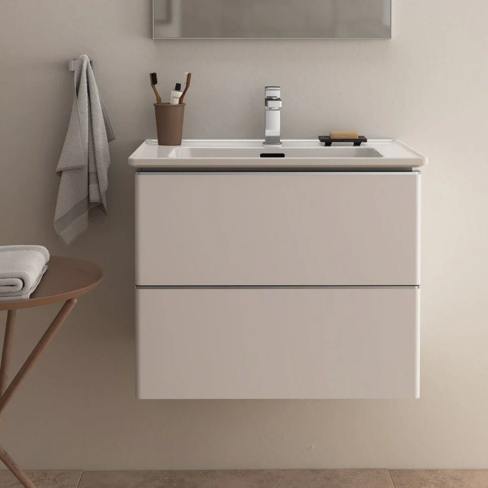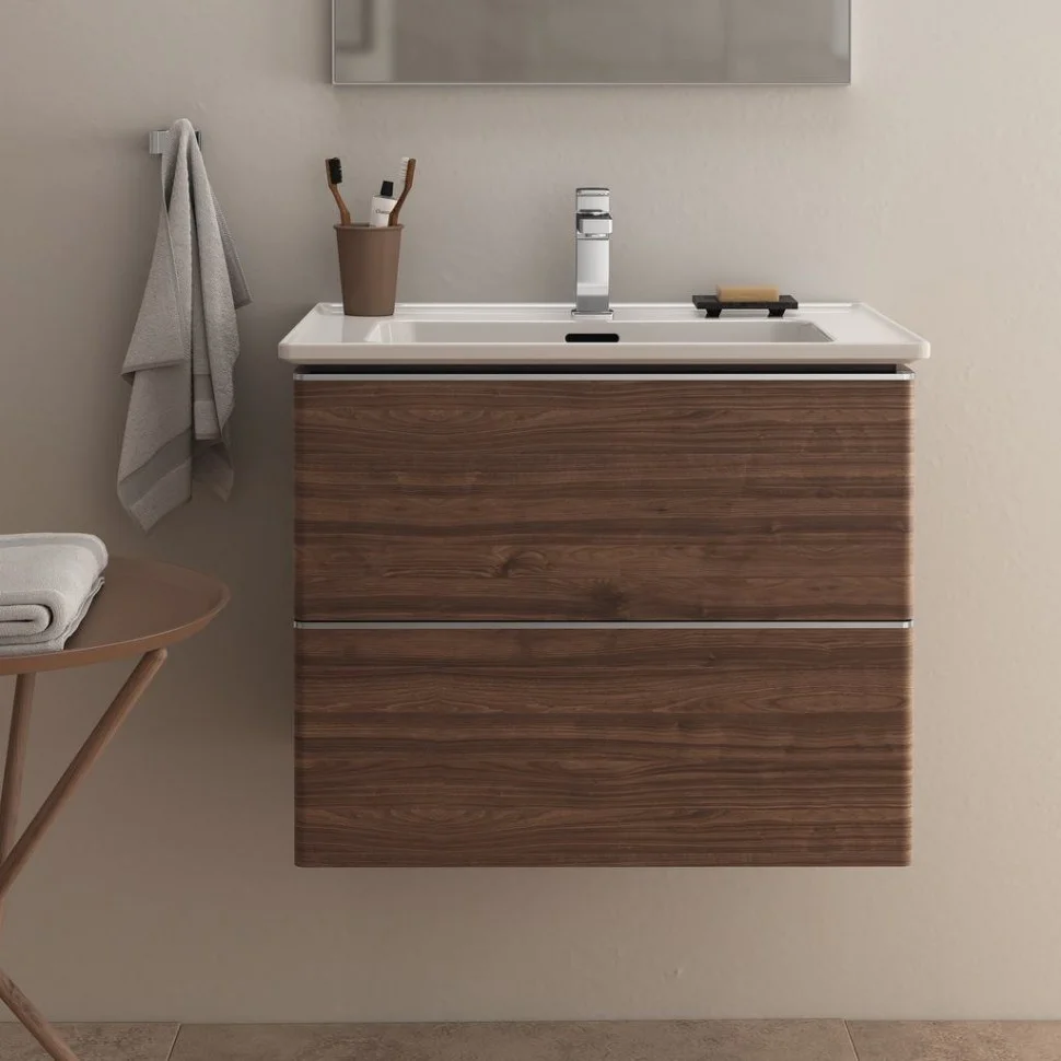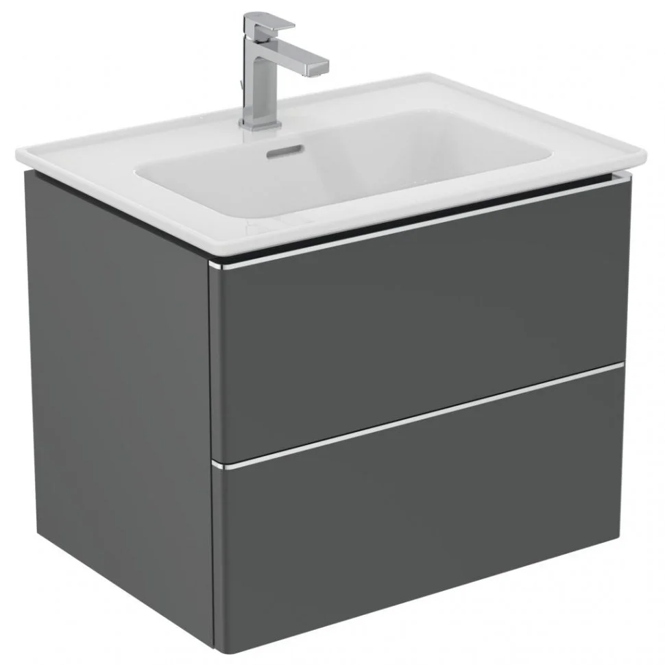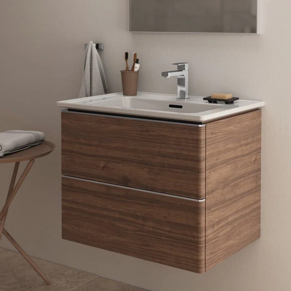 STRADA II Vanity Умывальник 64 см с отверстием под смеситель, для монтажа с мебелью, полуколонной или дизайн-сифоном, с отверстием перелива (щелевого типа), с керамической накладкой слива (T854601). Без крепежа