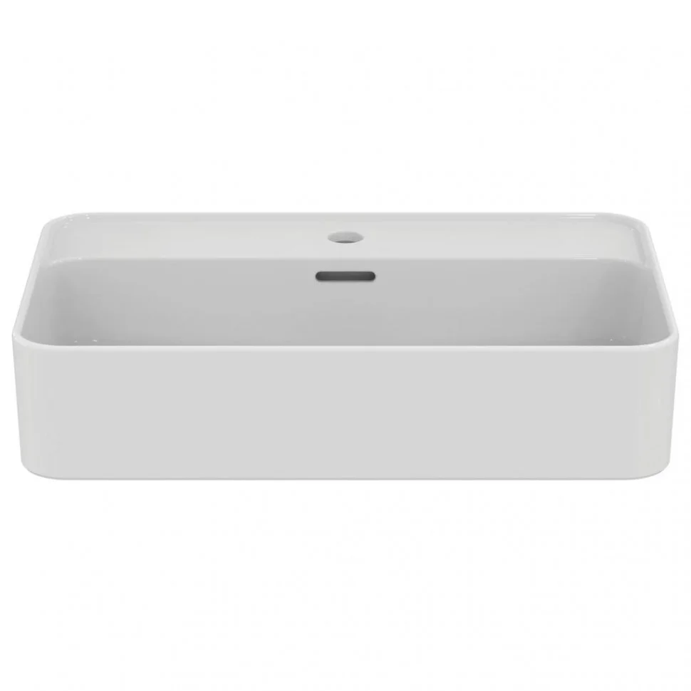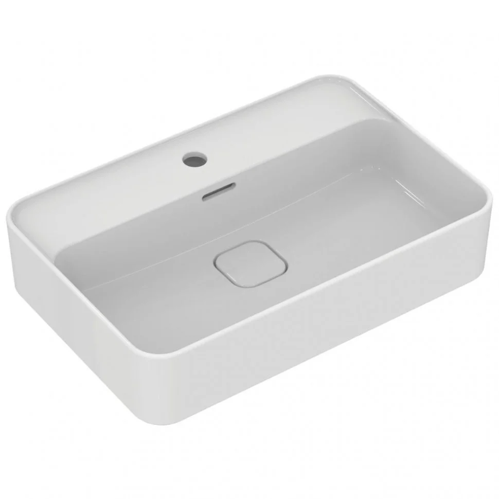 STRADA II Vessel Умывальник 60 см с полочкой для монтажа смесителя, для монтажа с мебелью, с отверстием перелива (щелевого типа), с керамической накладкой слива (T854601), с крепежом