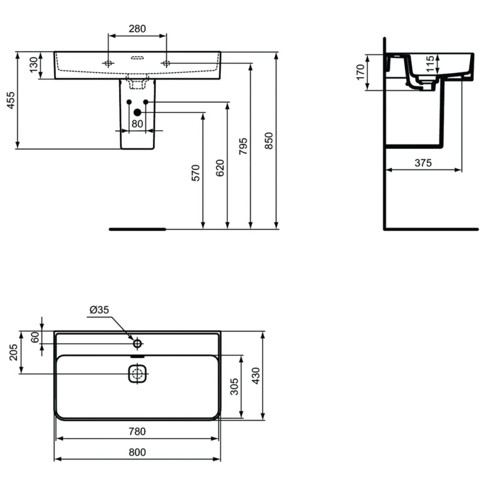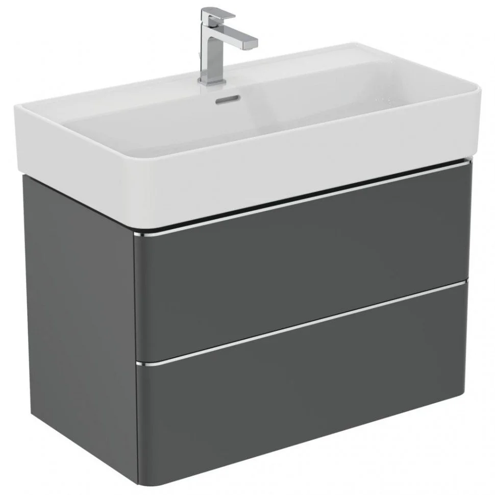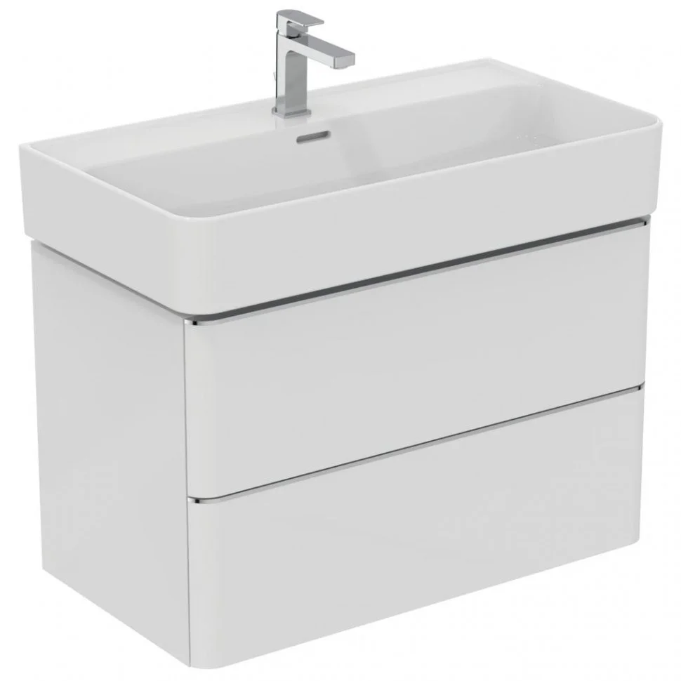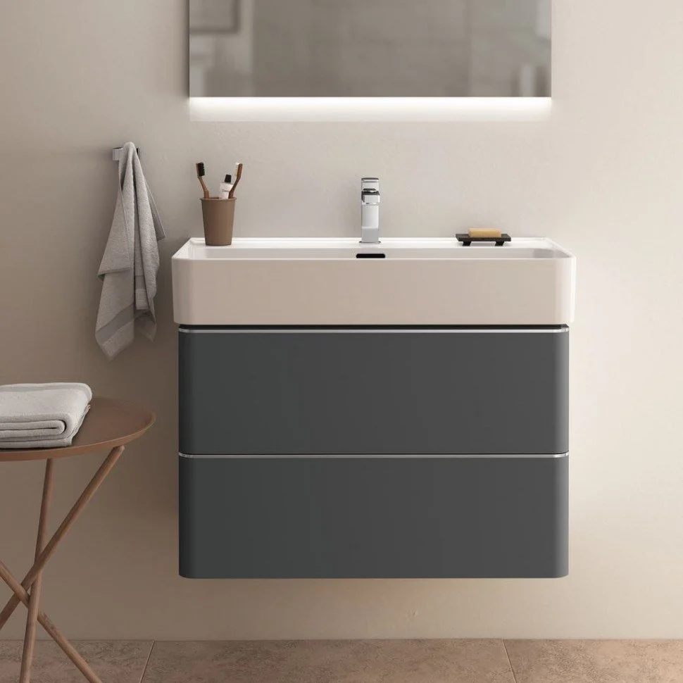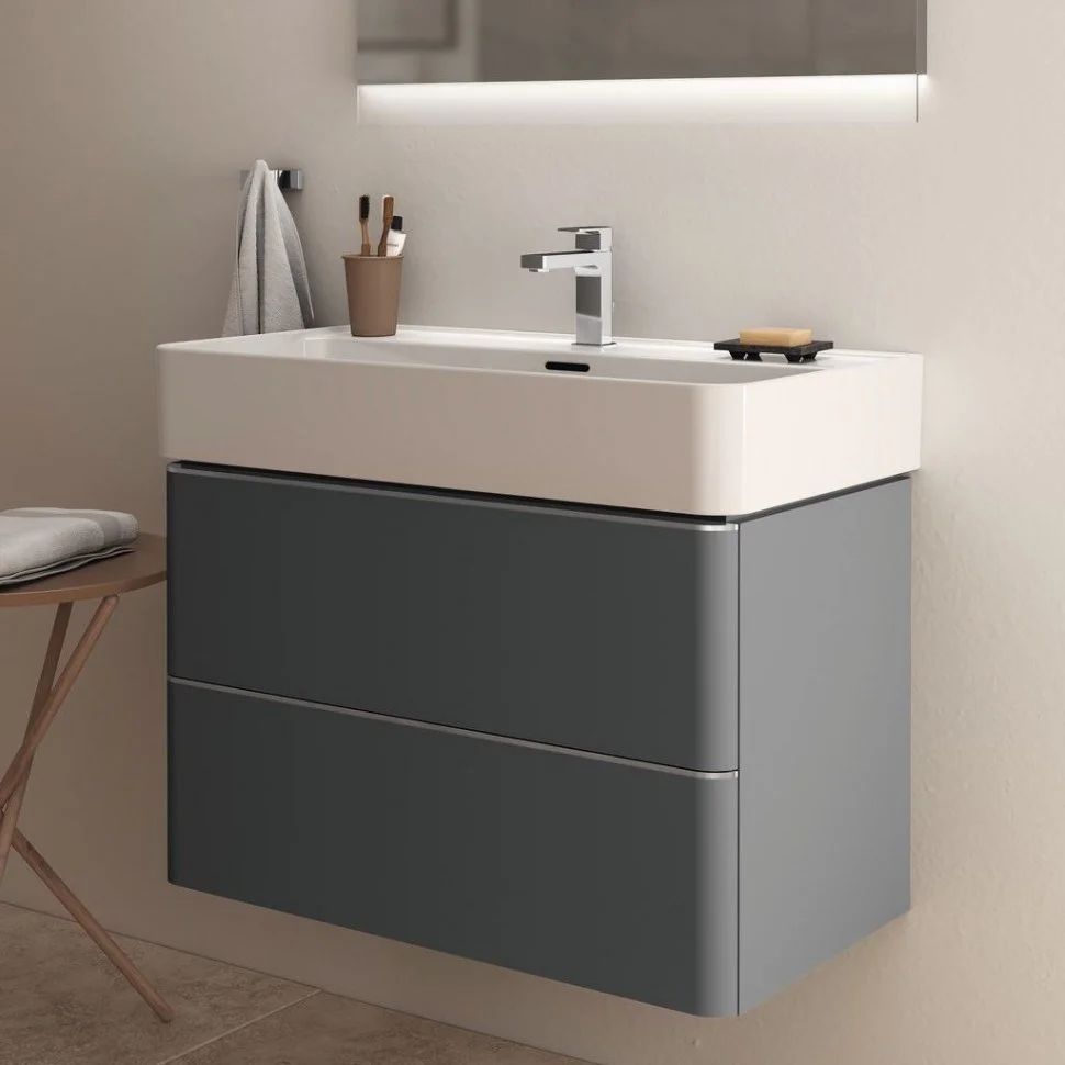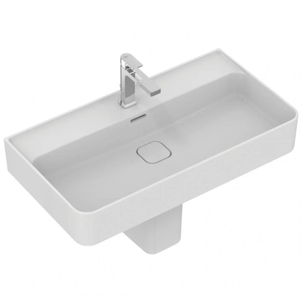 STRADA II Умывальник 80 см для монтажа с одним смесителем, с 1-м отверстием под смеситель, для монтажа с полуколонной или дизайн-сифоном, с отверстием перелива (щелевого типа), с керамической накладкой слива (T854601). Без крепежа