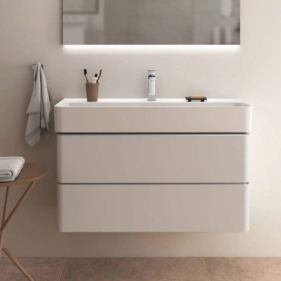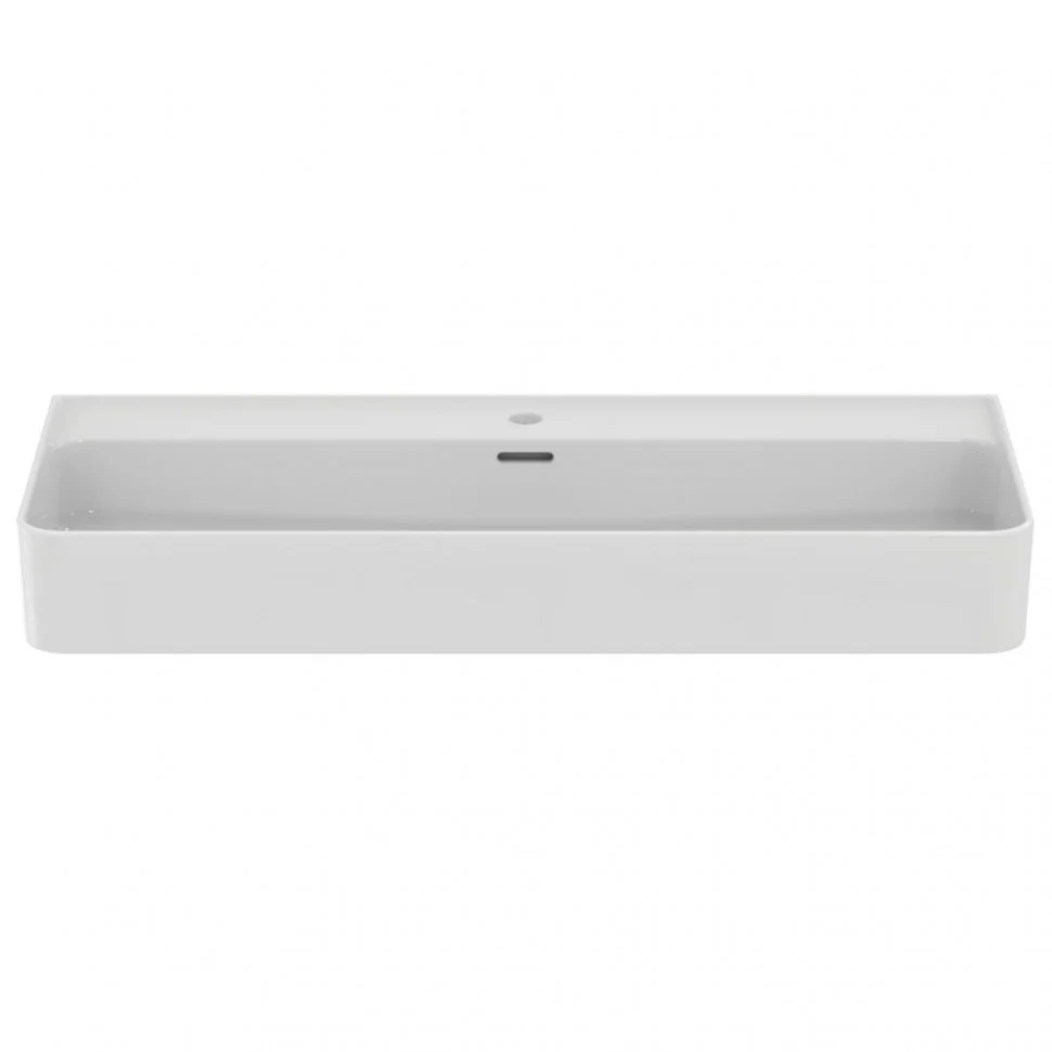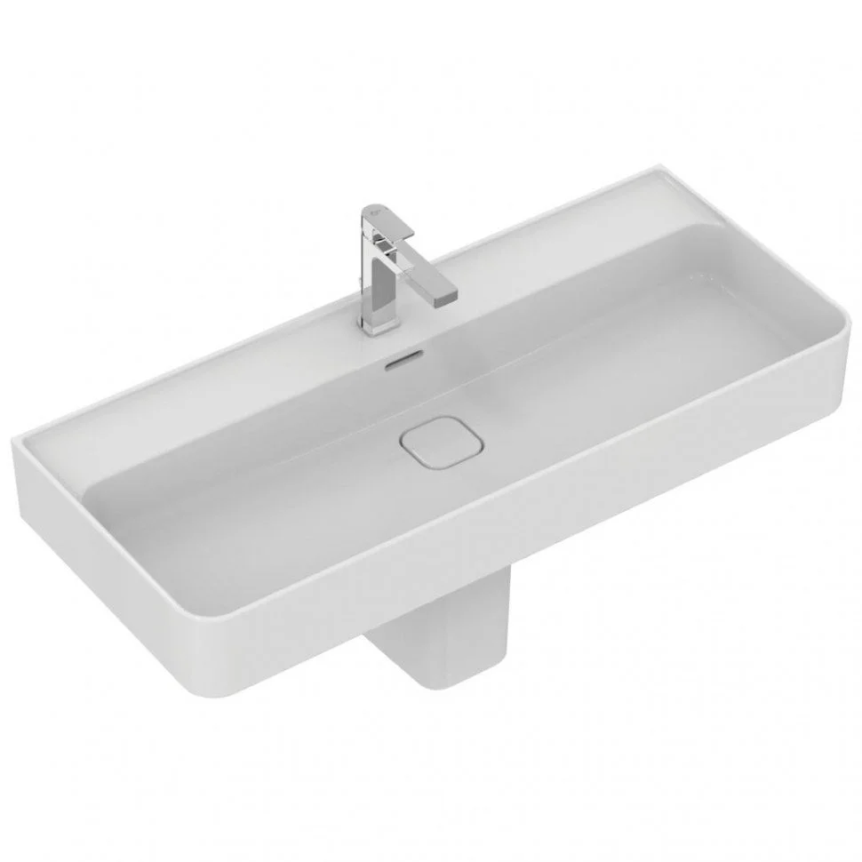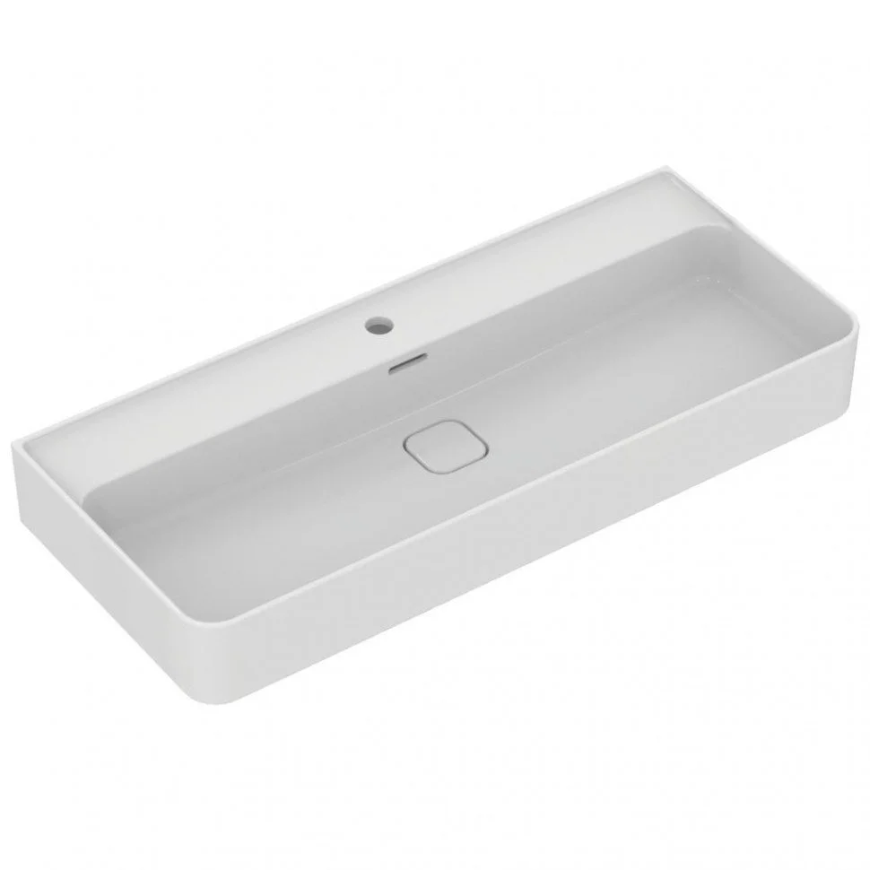 STRADA II Умывальник 100 см для монтажа с одним смесителем, с 1-м отверстием под смеситель, для монтажа с полуколонной или дизайн-сифоном, с отверстием перелива (щелевого типа), с керамической накладкой слива (T854601). Без крепежа