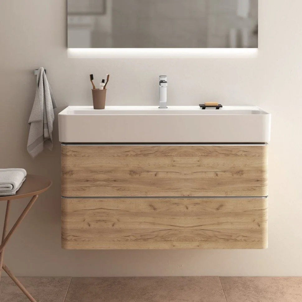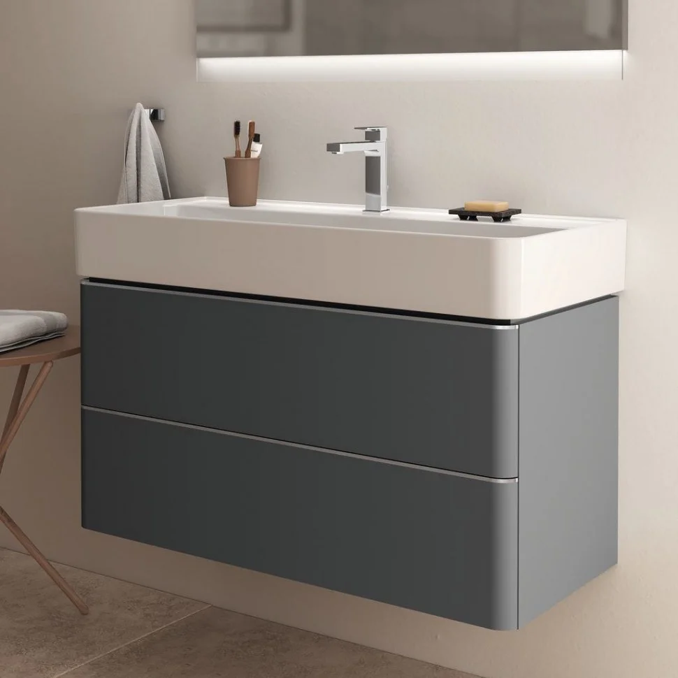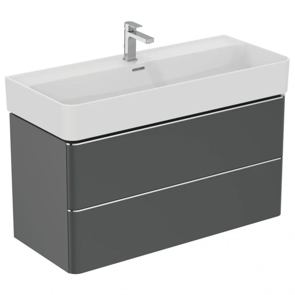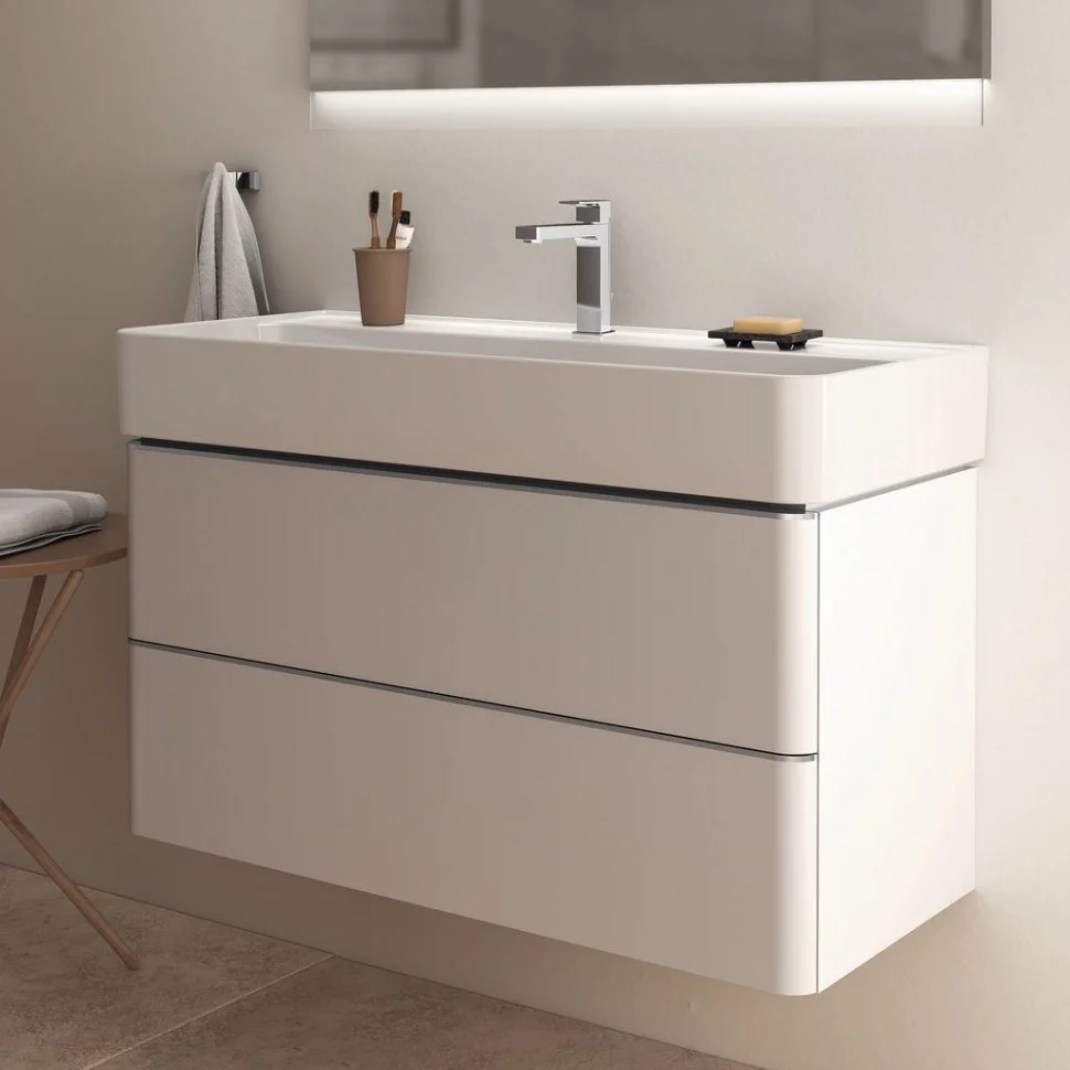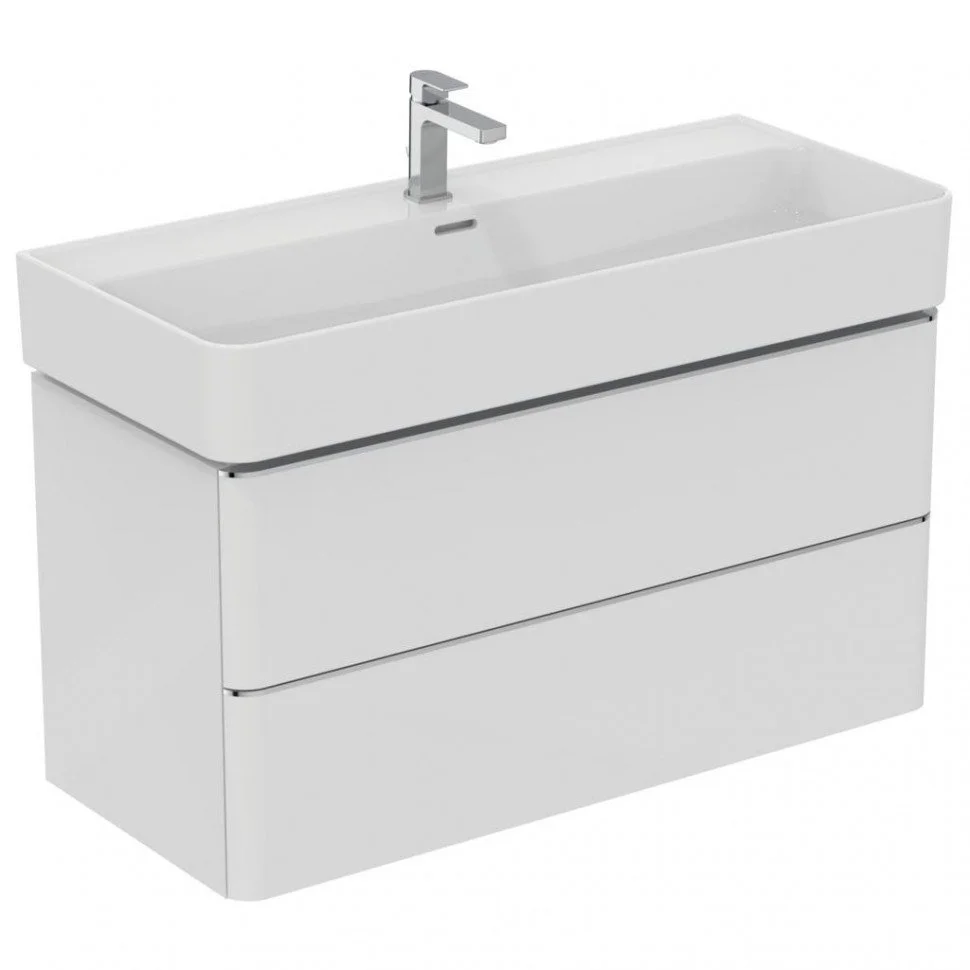 STRADA II Умывальник 100 см для монтажа с одним смесителем, с 1-м отверстием под смеситель, для монтажа с полуколонной или дизайн-сифоном, с отверстием перелива (щелевого типа), с керамической накладкой слива (T854601). Без крепежа