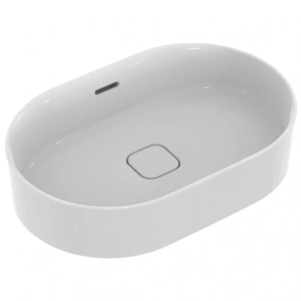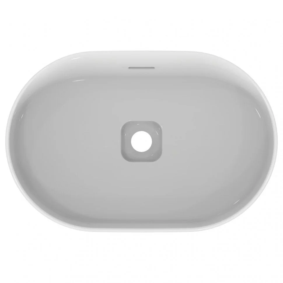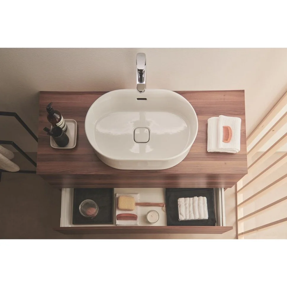STRADA II Oval Vessel Умывальник 60 см без отверстия под смеситель, для монтажа с мебелью, с отверстием перелива (щелевого типа), с керамической накладкой слива (T854601), с крепежом