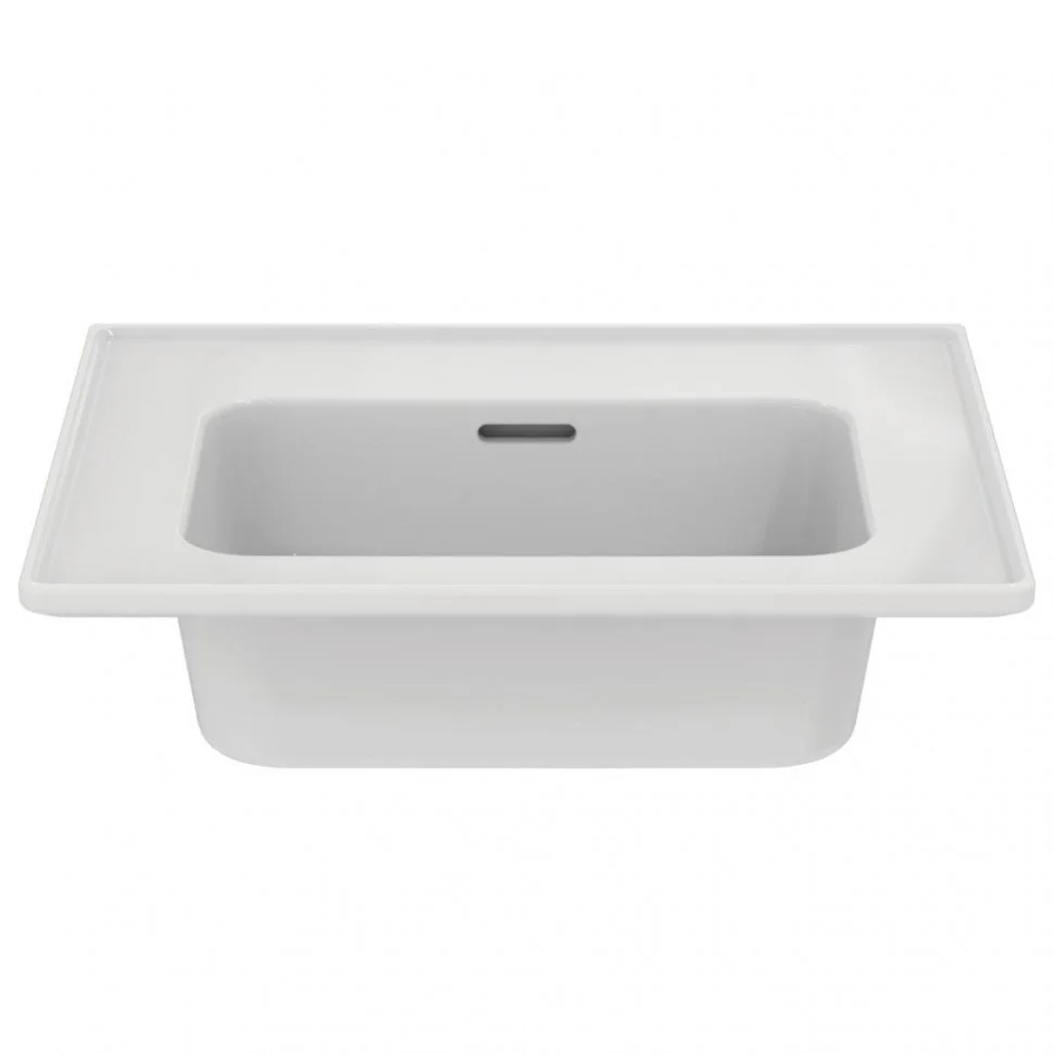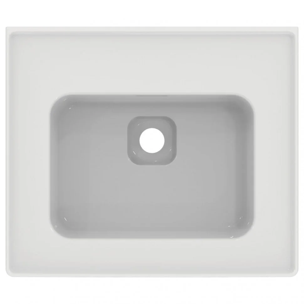 STRADA II Vanity Умывальник 54 см без отверстия под смеситель (для комбинации с настенным смесителем), для монтажа с мебелью, полуколонной или дизайн-сифоном, с отверстием перелива (щелевого типа), с керамической накладкой слива (T854601). Без крепежа