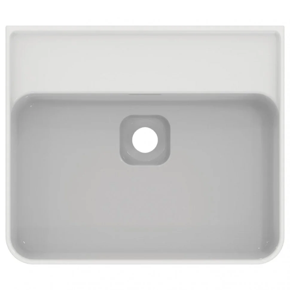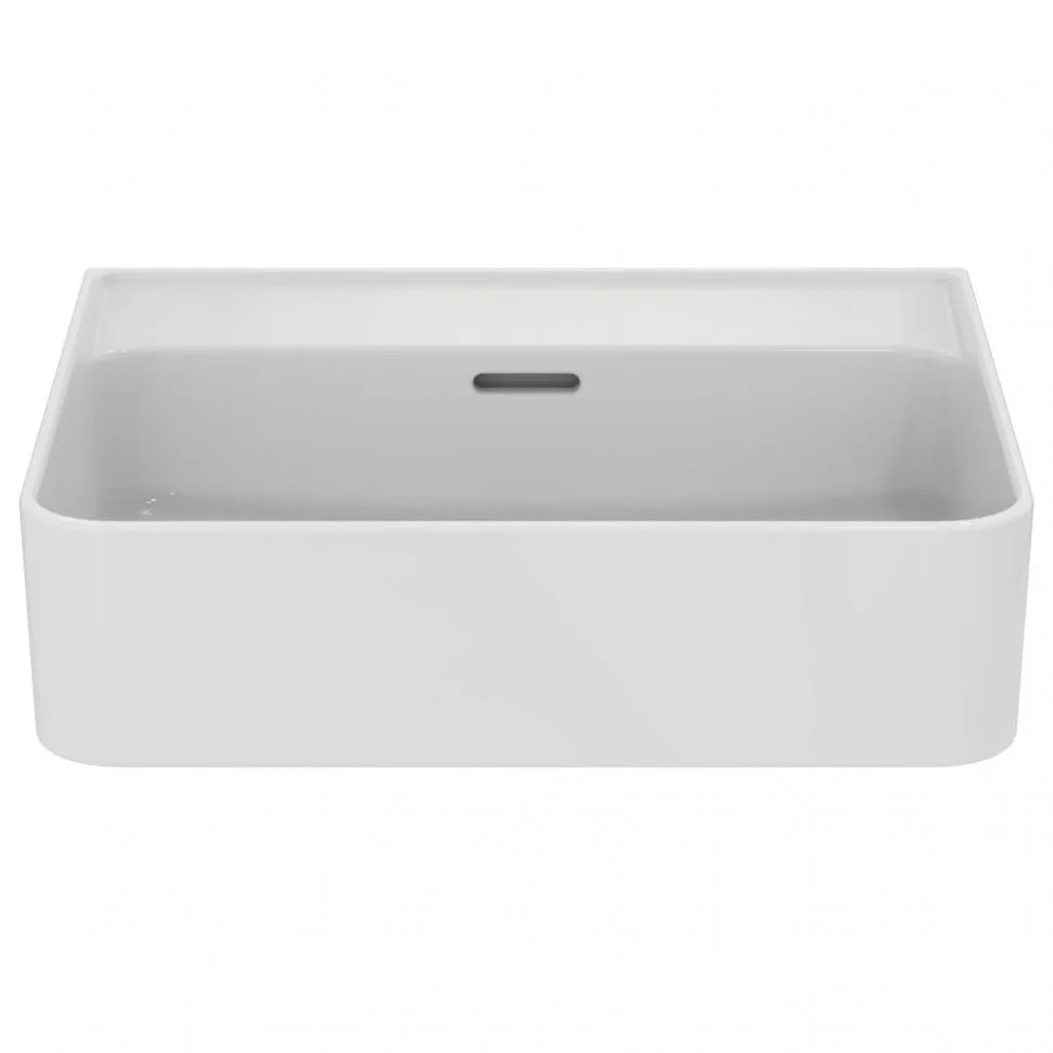 STRADA II Умывальник 50 см без отверстия под смеситель (для комбинации с настенным смесителем), для монтажа с полуколонной или дизайн-сифоном, с отверстием перелива (щелевого типа), с керамической накладкой слива (T854601), без крепежа