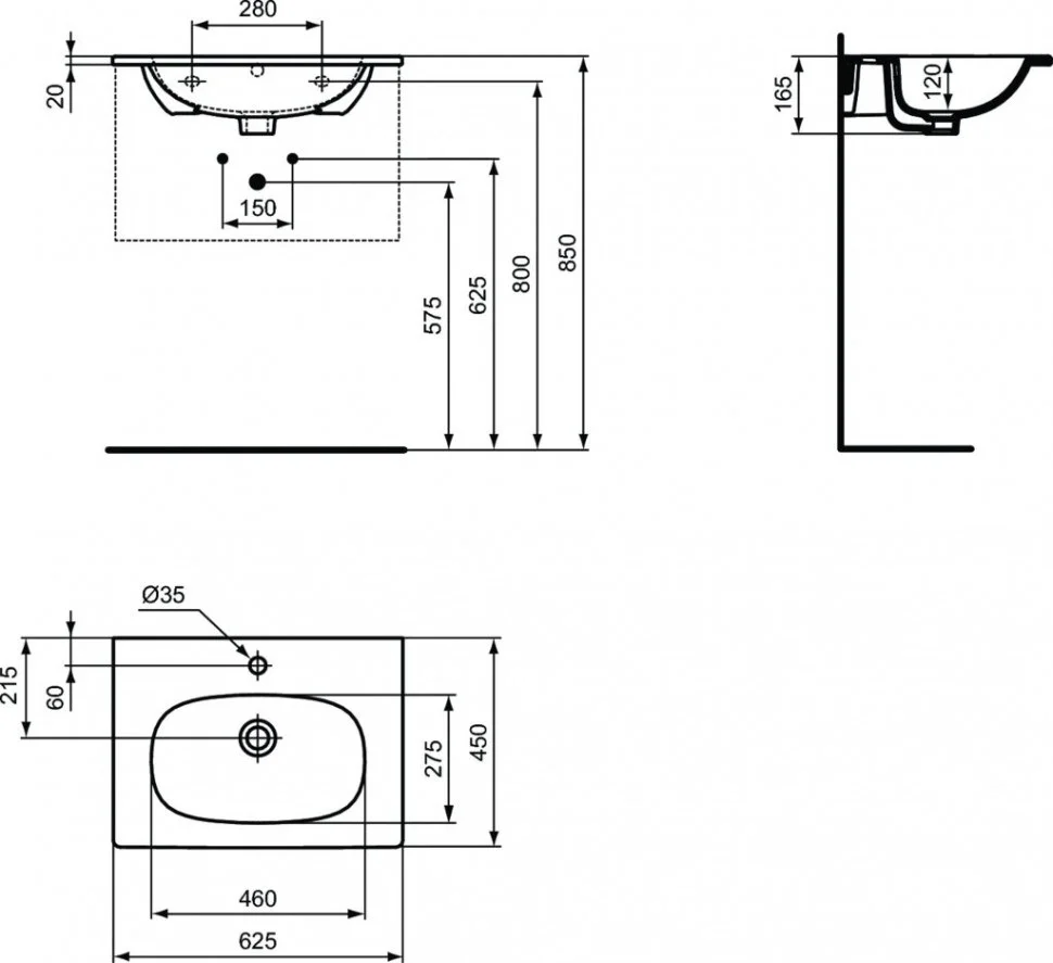 Раковина Ideal Standard TESI T3510V3 60 см с отверстием под смеситель