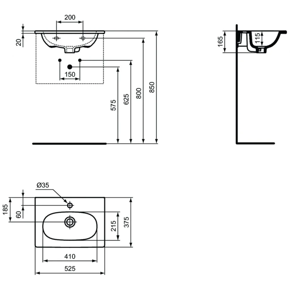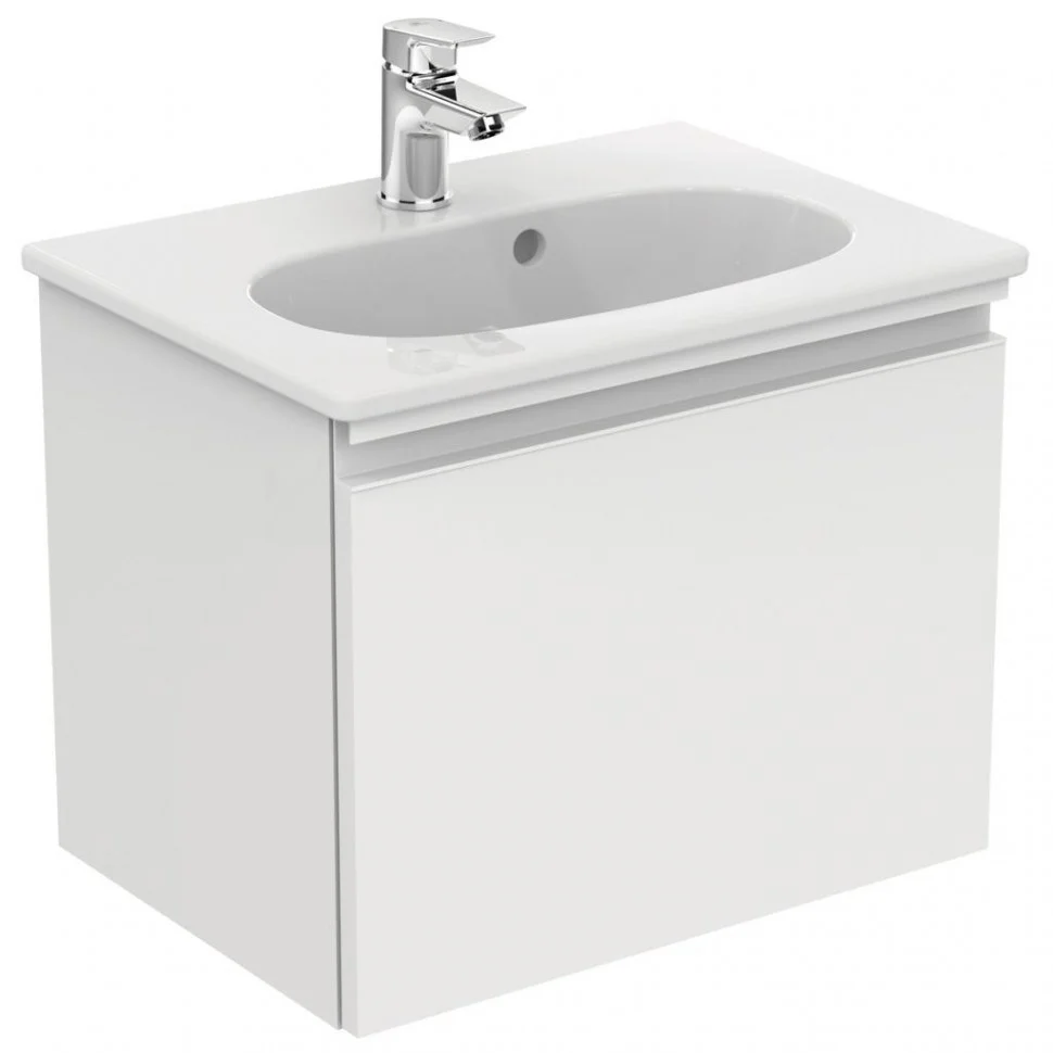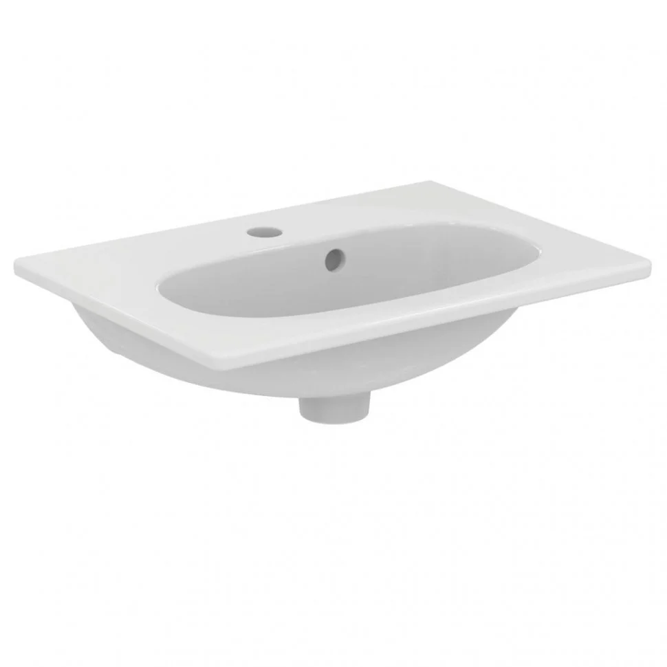 TESI Vanity Умывальник 50 см для монтажа соло с дизайн-сифоном или с подстольем TESI 50 см, с отверстием под смеситель, со смещенным отверстием перелива. Без крепежа, рекомендуемый крепеж K710767