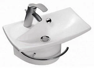 С единым полупьедесталом и хромированной заглушкой для переливного отверстия.