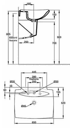 Разметка сверления отверстия для смесителя: с 1 отверстием для смесителя, два размечено.