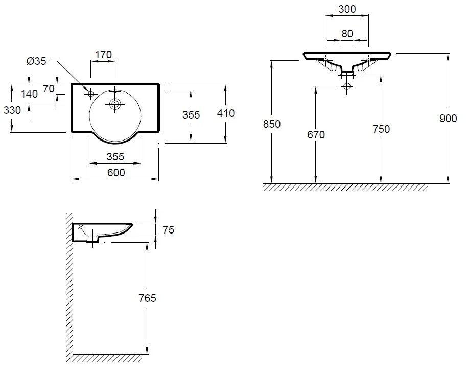 Выпускается аналогичная раковина с отверстием для смесителя справа.