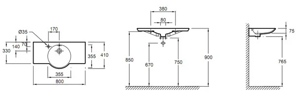 Выпускается аналогичная раковина с отверстием для смесителя справа E4507.