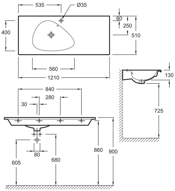 Раковина-столешница c шлифованной нижней кромкой для установки на мебель.