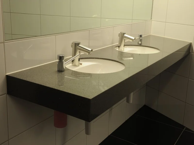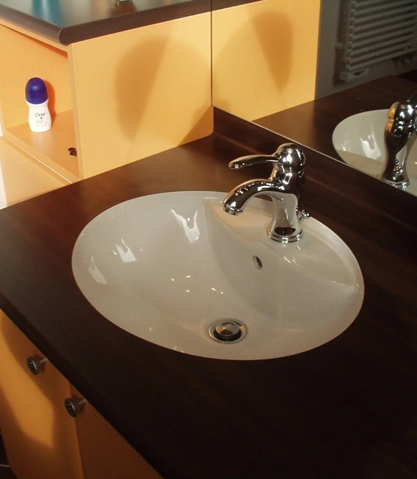 Разметка сверления отверстия для смесителя: с 1 отверстием для смесителя, два размечено