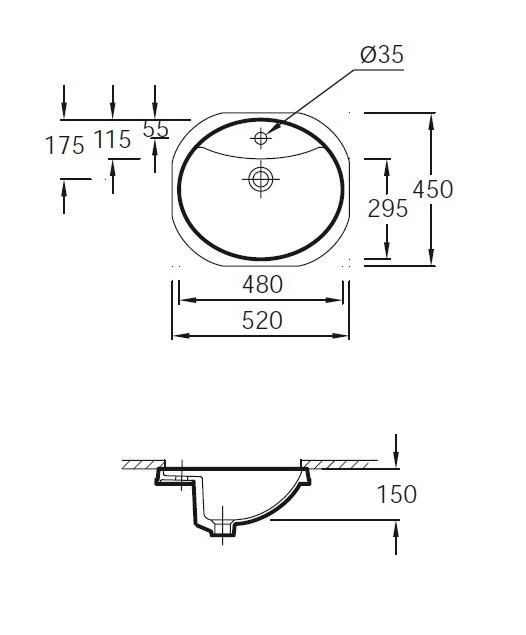 Встраиваемая раковина 52 см Odeon, Jacob Delafon