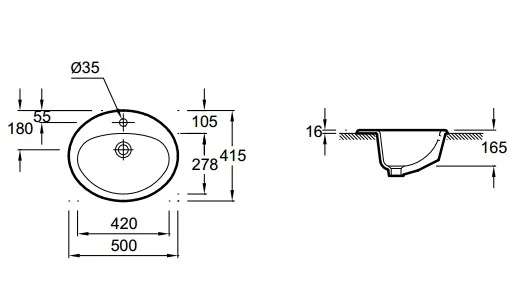 Встраиваемая раковина 50 см Ovaledessus, Jacob Delafon