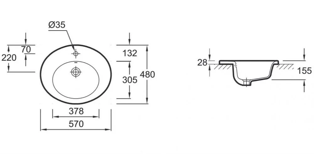 Раковина Ove E1524-00. Размер 57x48х15,5 см. Цвет белый. Встраиваемая в мебель раковина с элегантным дизайном. Оснащена хромированной заглушкой для перелива. Сглаженные формы раковины удобны для ежедневного использования и лёгкой уборки.
