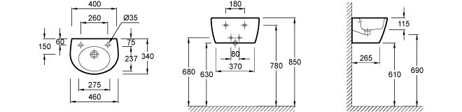 Вес: 12,5 кг. Разметка сверления отверстия для смесителя: Без отверстий, 2 для смесителя размечено справа и слева.Крепежи: 2 шпильки для крепежа (в комплект не входит). Полупьедестал.