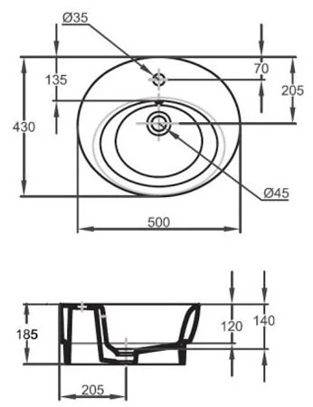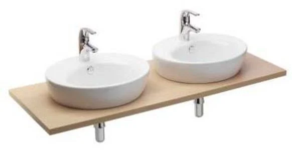 Размер: 50х43х19см. Раковина, устанавливаемая на мебель или столешницу, с одним отверстием для смесителя и хромированной заглушкой.