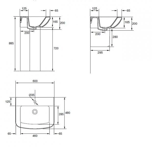 Размер: 60х48х15см. Раковина подвесная с одним отверстием для смесителя.