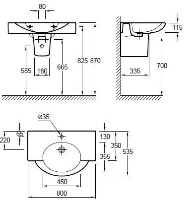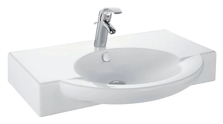 Цвет белый. Широкая, удобная площадка для размещения всех ванных мелочей.