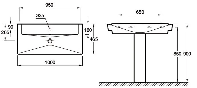 Размеры (см): 100 x 46,50 см. Вес: 33,1 кг. Разметка сверления отверстия для смесителя: С 1 отверстием для смесителя по центру.