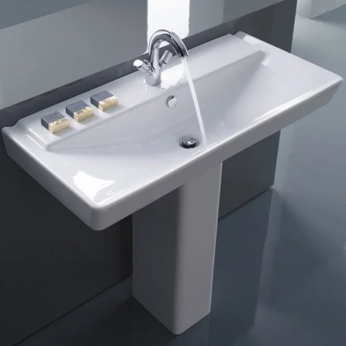 Керамическая раковина-столешница Reve E4801-00. Размер 100х46,5х13,5 см. Цвет белый. Большое пространство для размещения различных предметов - комфортное использование. Угловатые формы. Имеется модель без отверстия для смесителя E4801-X5.