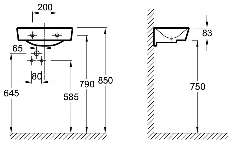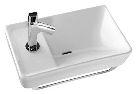 Сочетание прямых линий и плавных изгибов. Одно отверстие для смесителя. Открытое сточное отвестие, без переливного отверстия.