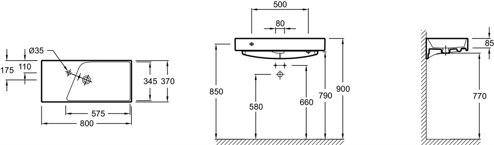 Раковина Jacob Delafon Rythmik 80 см EXP112-Z-00