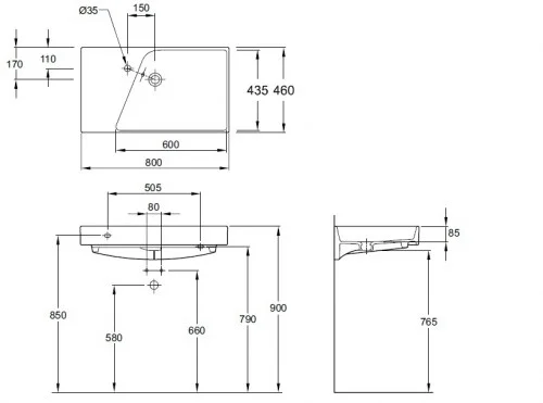 Formilia Rythmik 80х46см, раковина, подвесная, прямоугольная, со столешницей, арт. E4785-00, Jacob Delafon