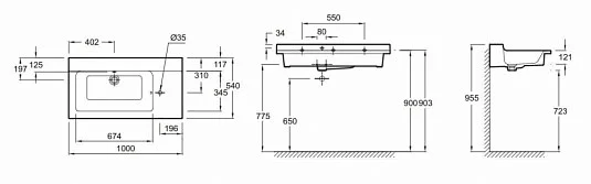 Широкая центральная полочка для оптимального удобства использования и задняя полочка для туалетных принадлежностей