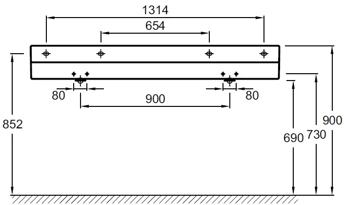 На собственной опоре. 2 отверстия для смесителя справа и слева.