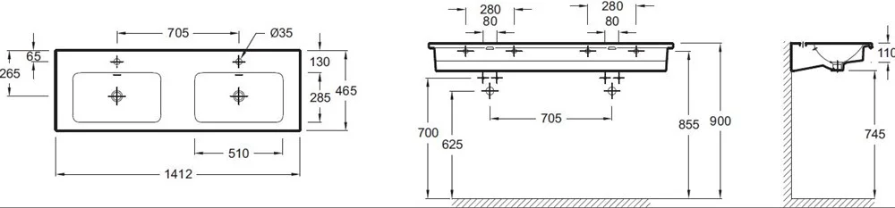 Функциональность: широкие полочки, большая и глубокая раковина с мягкими краями без острых углов для легкой очистки