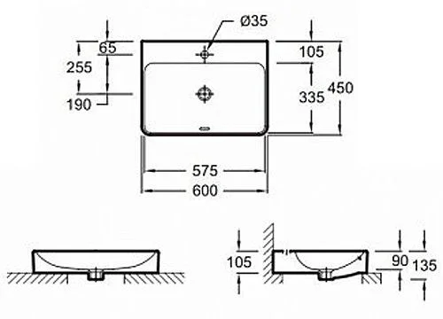 VOX НАКЛАДНАЯ РАКОВИНА 60 Х 45 СМ, БЕЗ ПЕРЕЛИВНОГО ОТВЕРСТИЯ EVD012-00