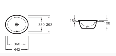 Vox 44,2х36,2см, раковина, санфарфор, встраиваемая сверху, с переливным отверстием, арт. EYJ102-00, Jacob Delafon