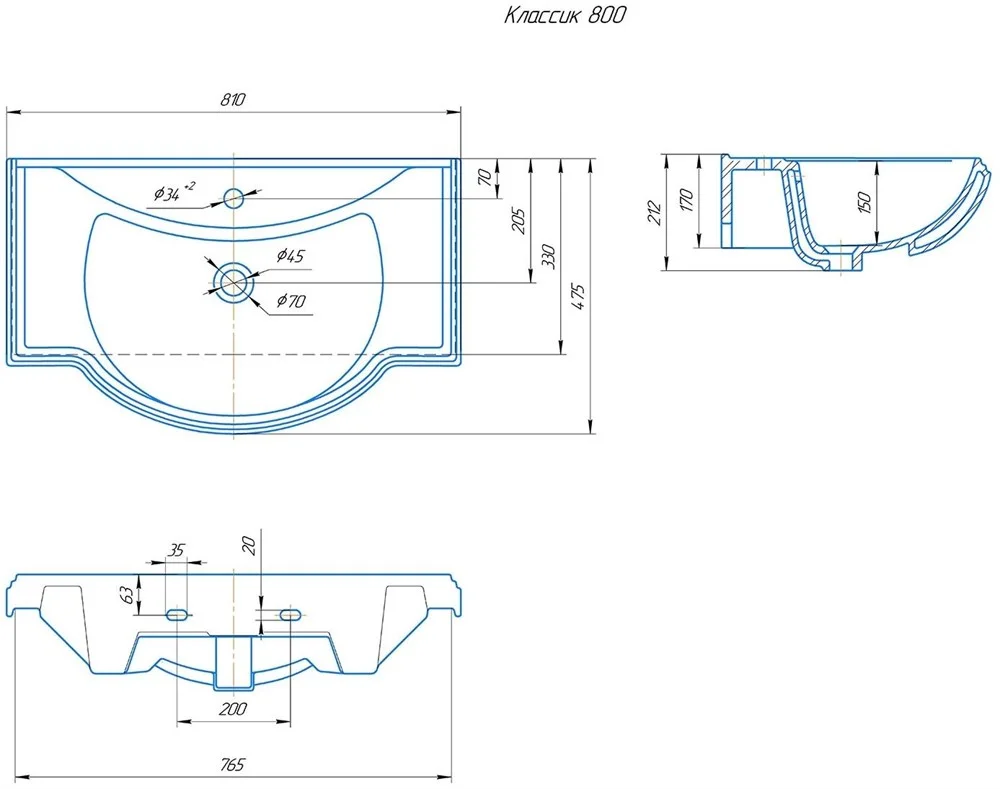 Раковина Kirovit Классик 80 см