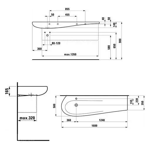 Раковина - столешница Laufen Alessi 1497.1 (8.1497.1.400.104.1), накладная. Размер: 1600 х 500 х 165 мм. Вес: 36 кг. Цвет: белый.