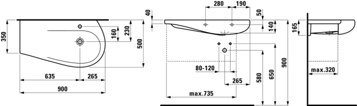 Раковина-столешница Laufen Alessi 1497.6 (8.1497.6.400.104.1). Размер: 900 х 500 х 165 мм. Вес: 21 кг. Цвет: белый.