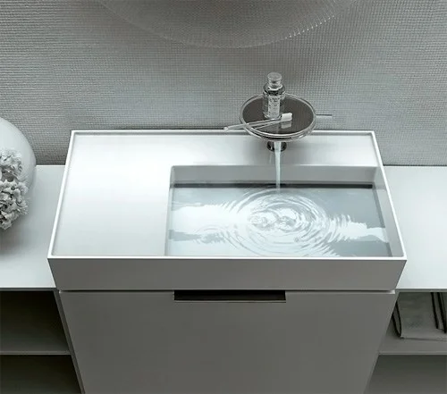 - раковина с полочкой слева, со специальным скрытым сливом