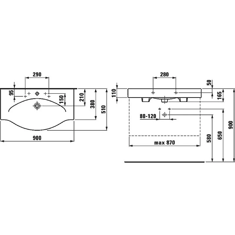 Раковина-столешница Laufen Palace New 1170.2 (8.1170.2.000.104.1). Размер: 900х510х165 мм. Вес: 22 кг. Цвет: белый.
