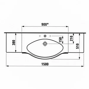 Раковина-столешница Laufen Palace New 1170.6 (8.1170.6.000.104.1), подрезаемая до 900 мм. Размер: 1500x510x165 мм. Вес: 35 кг. Цвет: белый.