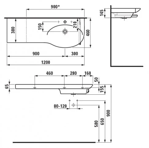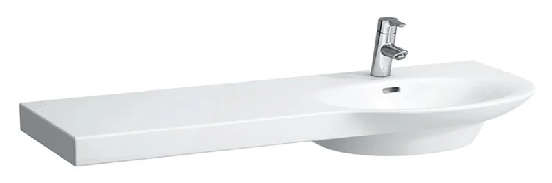 Раковина Laufen Palace New 1670.5 (8.1670.5.000.104.1), накладная, ассиметричная, левая, подрезаемая до 900 мм. Размер: 1200х460х155 мм. Вес: 24 кг. Цвет: белый.