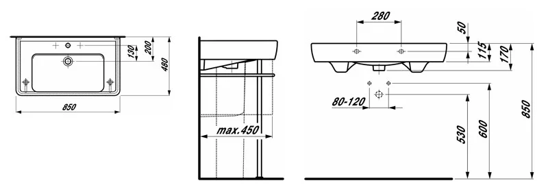 Купить Раковины подвесные производства Laufen (Швейцария), коллекция Pro A, код товара: 124971 можно выгодно в Сантемо.ру: