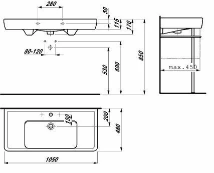 Раковина Laufen Pro A 1395.8 (8.1395.8.000.104.1). Размер: 1050 x 480 x 170 мм. Вес: 27 кг. Цвет: белый.